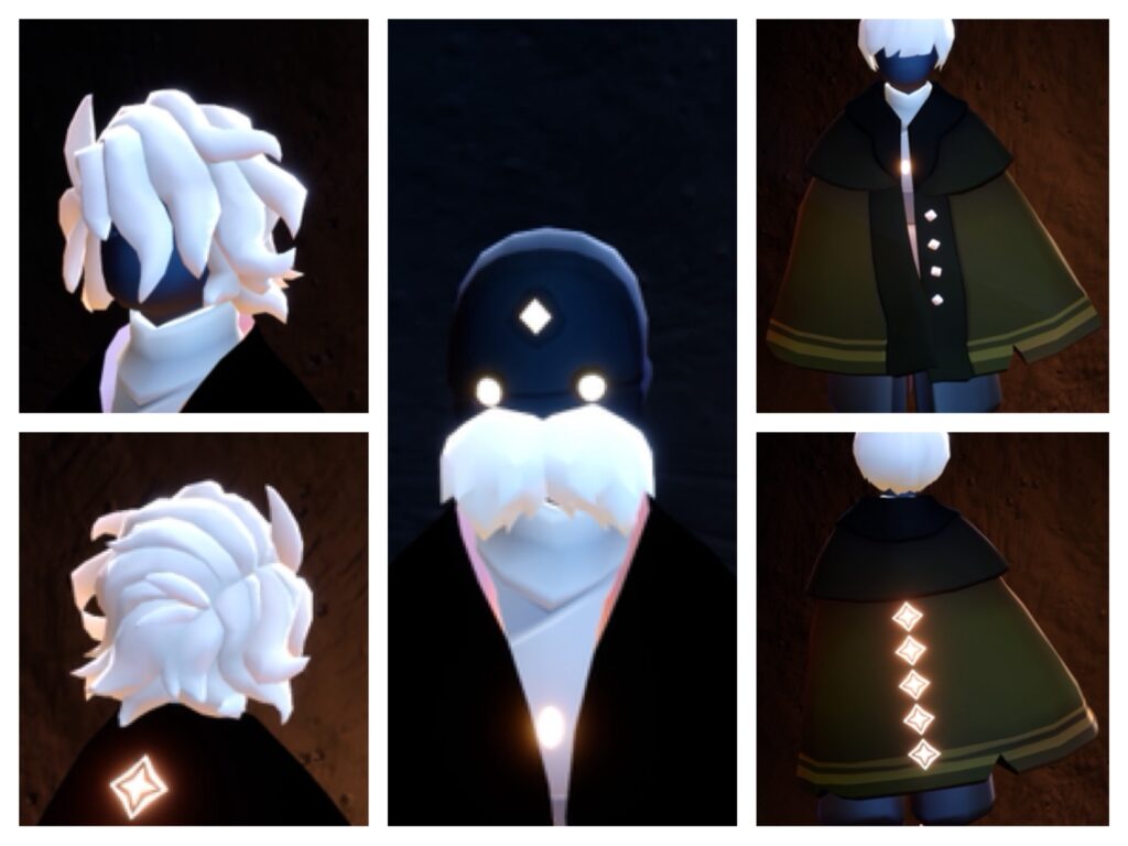 主に髪型、ケープ、お面、感情表現が入手可能です
