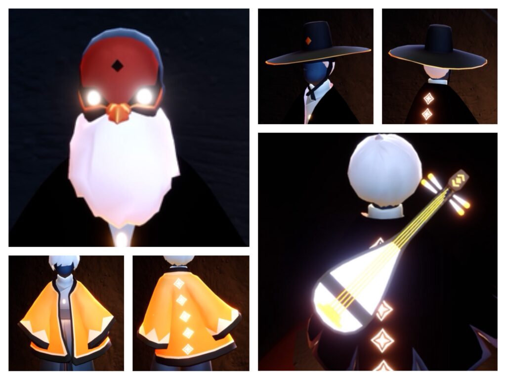 主に髪型、ケープ、お面、楽器、感情表現(ショーダンス)が入手可能です