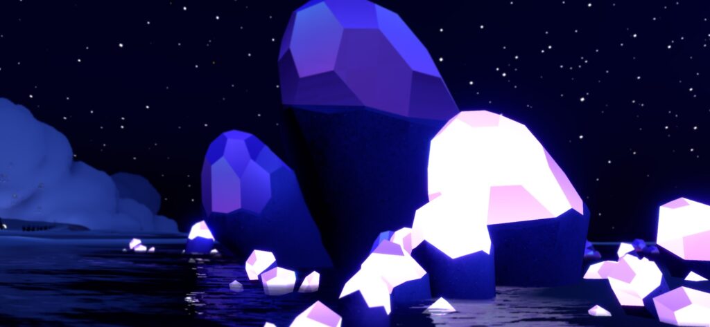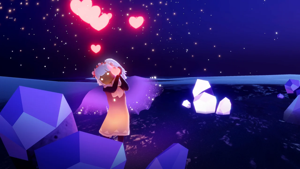 イベント会場では、星空を埋め尽くす紫水晶のような流星群が降り注いでおり、共鳴するエモートをすることで、水晶が輝いて光のかけらを集めることができます