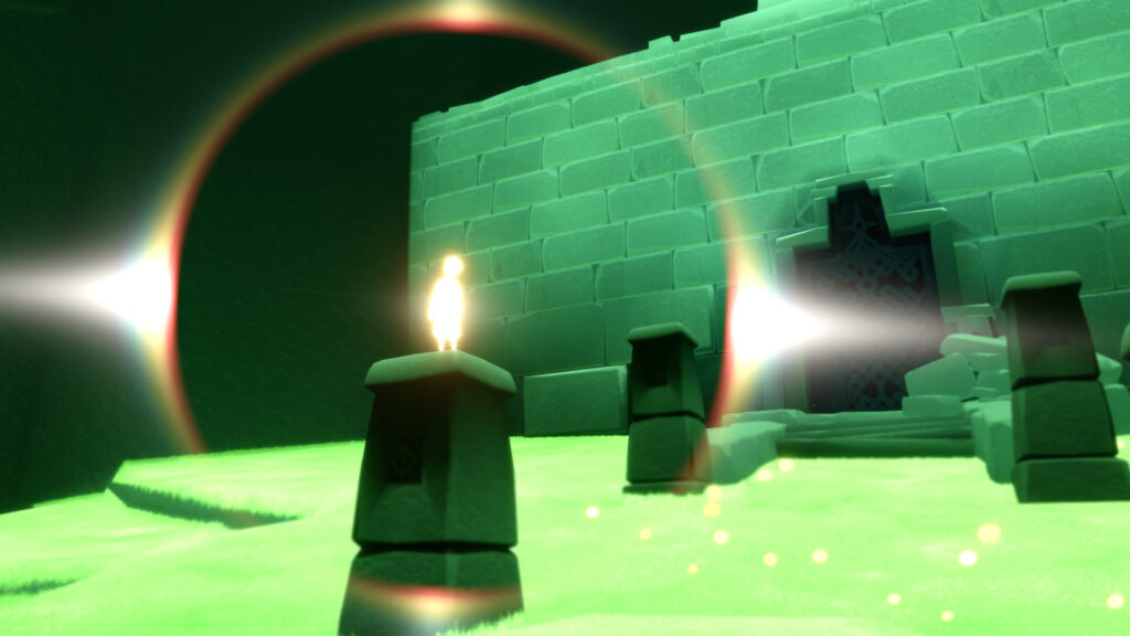 画像のように蝶々がたくさんいますので、羽が少なく行けない場合は大鳴きをして蝶々を使って飛んだり、周りにいる光の生物に頼ったりして進みましょう