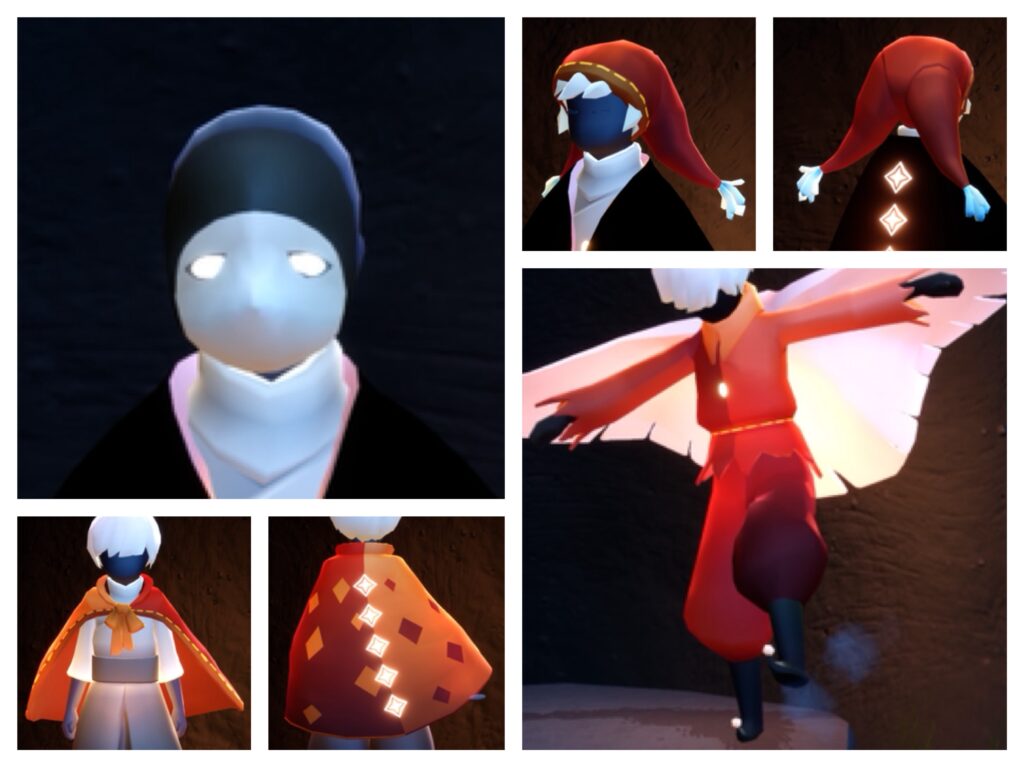 主に髪型、ケープ、服装、お面、感情表現が入手可能です