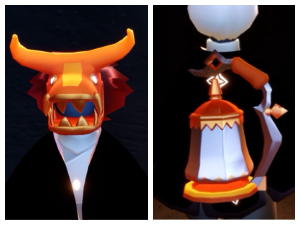 主にお面、楽器(鐘のような)、感情表現(カンフー)が入手可能です